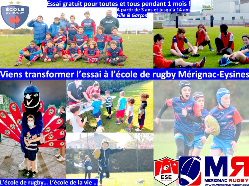 Dés mercredi 19 mai amenez vos futurs champions à l’Ecole de rugby de Mérignac Eysines. Essai gratuit pendant 1 mois.