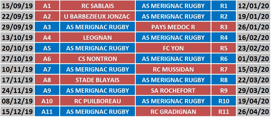 Le calendrier de la saison 2019-2020 vient de tomber. 2 beaux et gros déplacements aux Sables d’Olonnes, puis à Barbezieux-Jonzac pour démarrer la saison. Le 1er derby arrivera pour le premier match à domicile contre PMR.