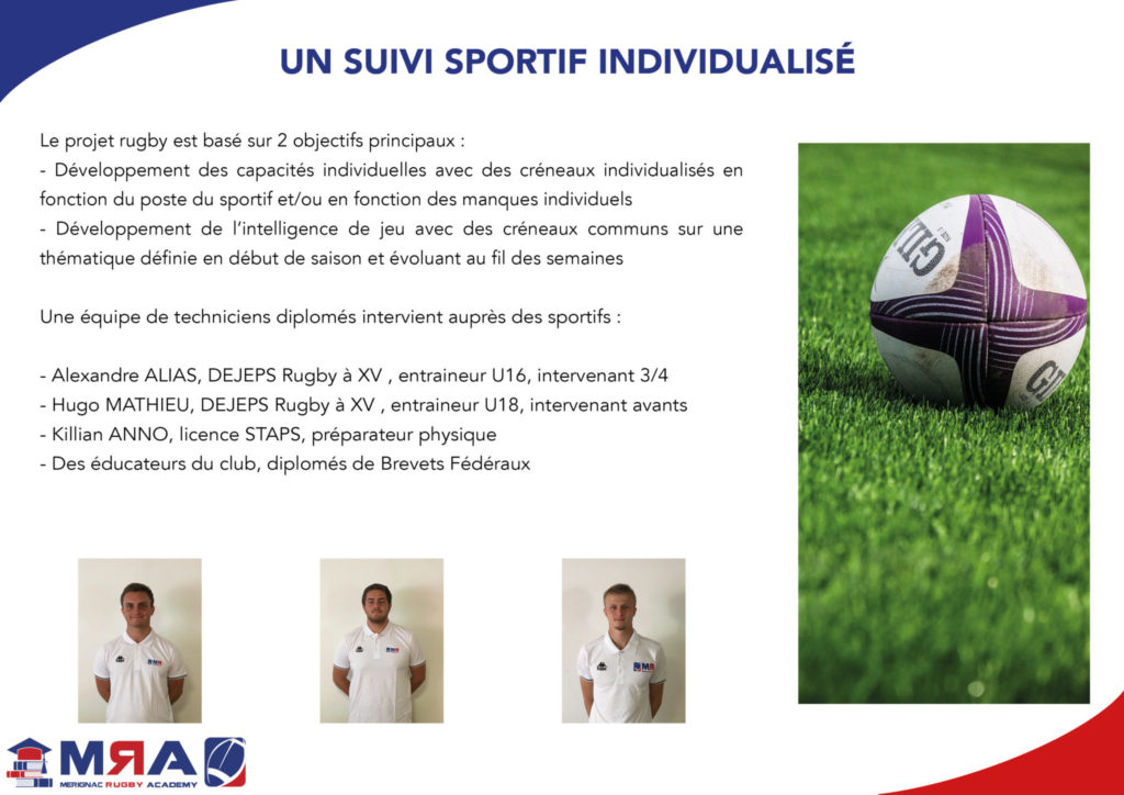 - Le sportif : développement optimisé des compétences rugbystique et physique.