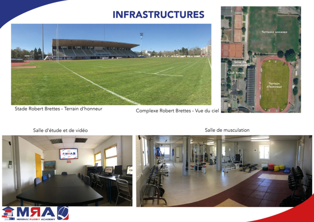 Créé en 2017, le Centre d’Entrainement de MÉRIGNAC RUGBY est une structure de formation ayant pour objectif d’amener les meilleurs joueurs du cru plus rapidement au niveau Fédéral en développant leurs qualités rugbystiques et leurs compétences pédagogiques. Labellisé dès sa deuxième année d’existence en Mars 2019, la structure est reconnue au niveau Fédéral.