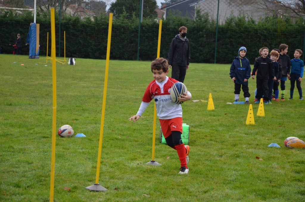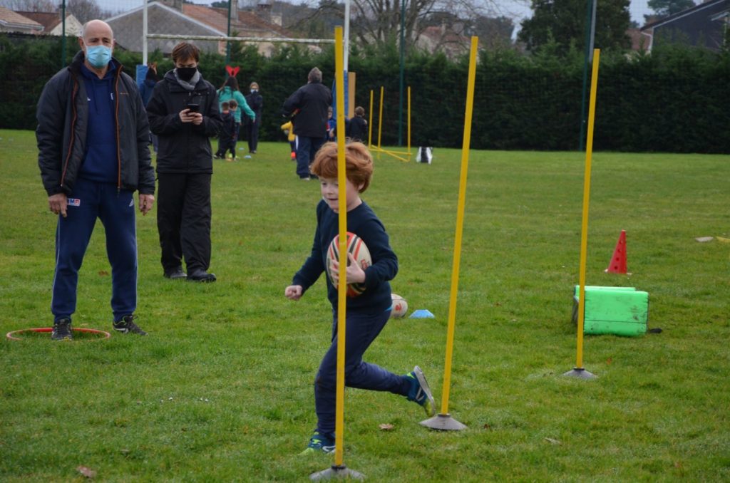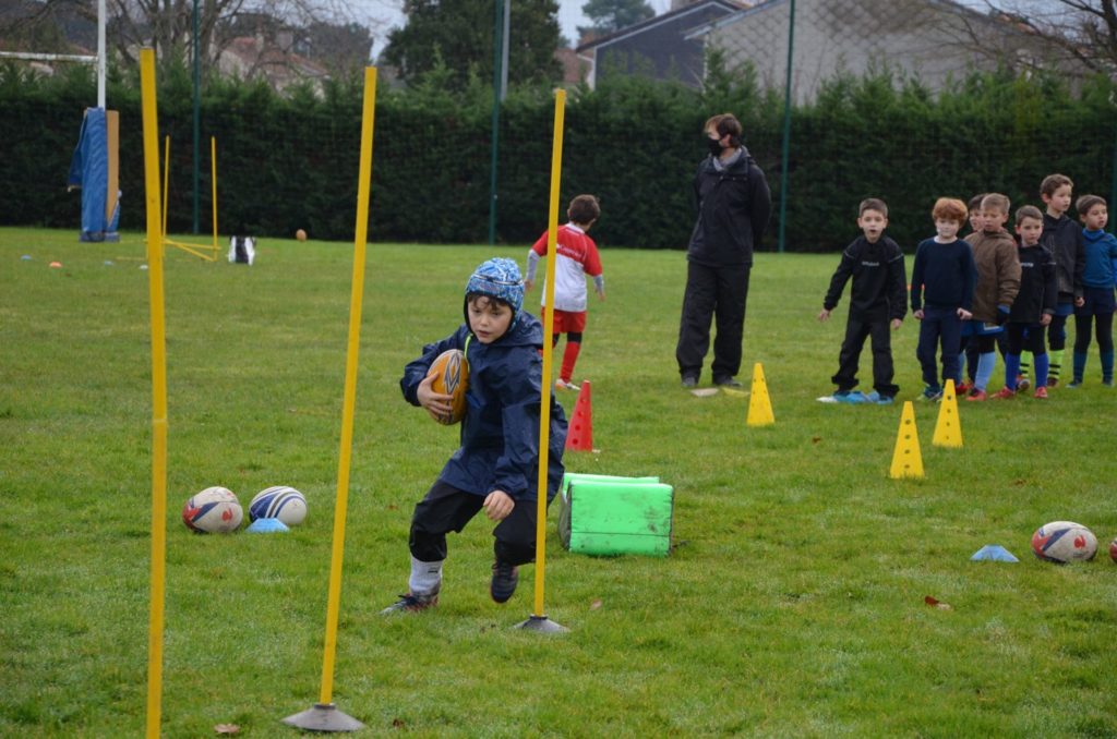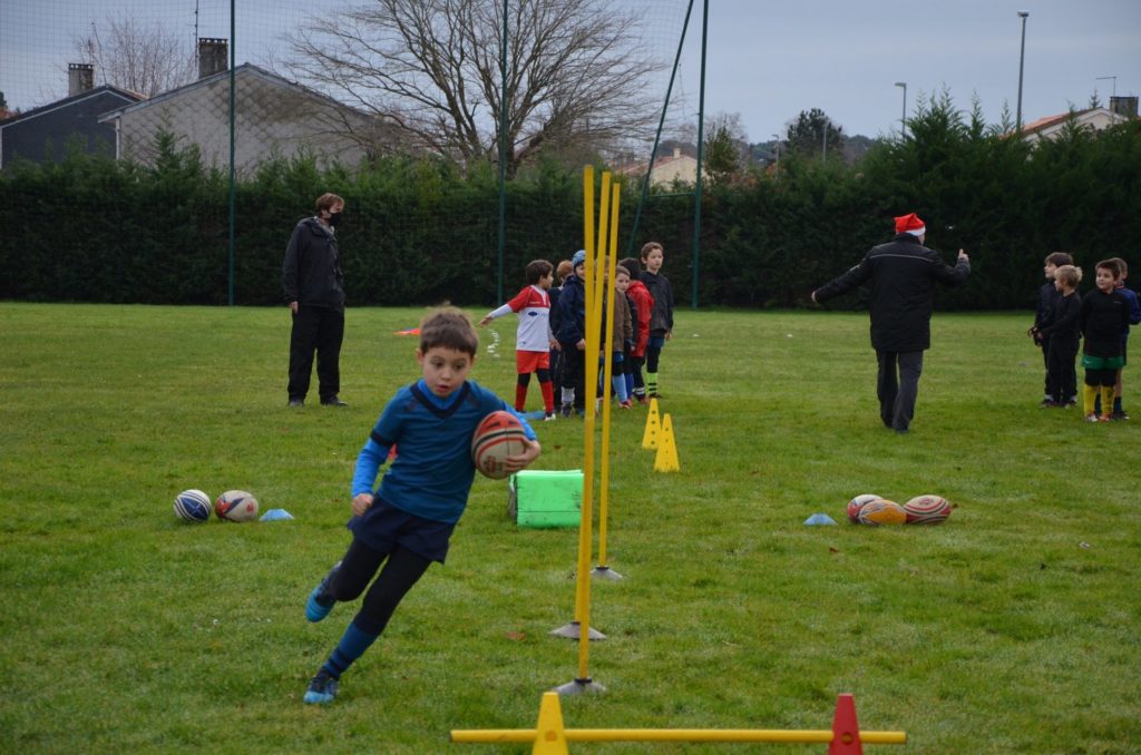 Depuis début du mois, l’évolution des consignes sanitaires ont permis à nos jeunes joueurs de l’école de rugby de reprendre les entrainements. Les Mercredis de Décembre ont donc revu nos jeunes sur les terrains de brettes ainsi que les Samedis matins chez notre partenaire le club d’Eysines.