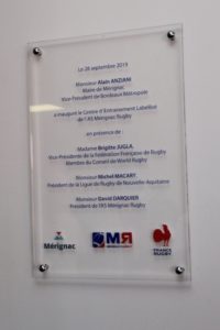 Le 28 septembre dernier, au stade Robert Brettes, M. Alain ANZIANI, Maire de Mérignac, a dévoilé la plaque inaugurale du tout nouveau Centre d’entraînement labellisé (CEL) par la Fédération Française de Rugby (FFR), géré et administré ,au sein de l’AS Mérignac Rugby, par une jeune équipe d’éducateurs .