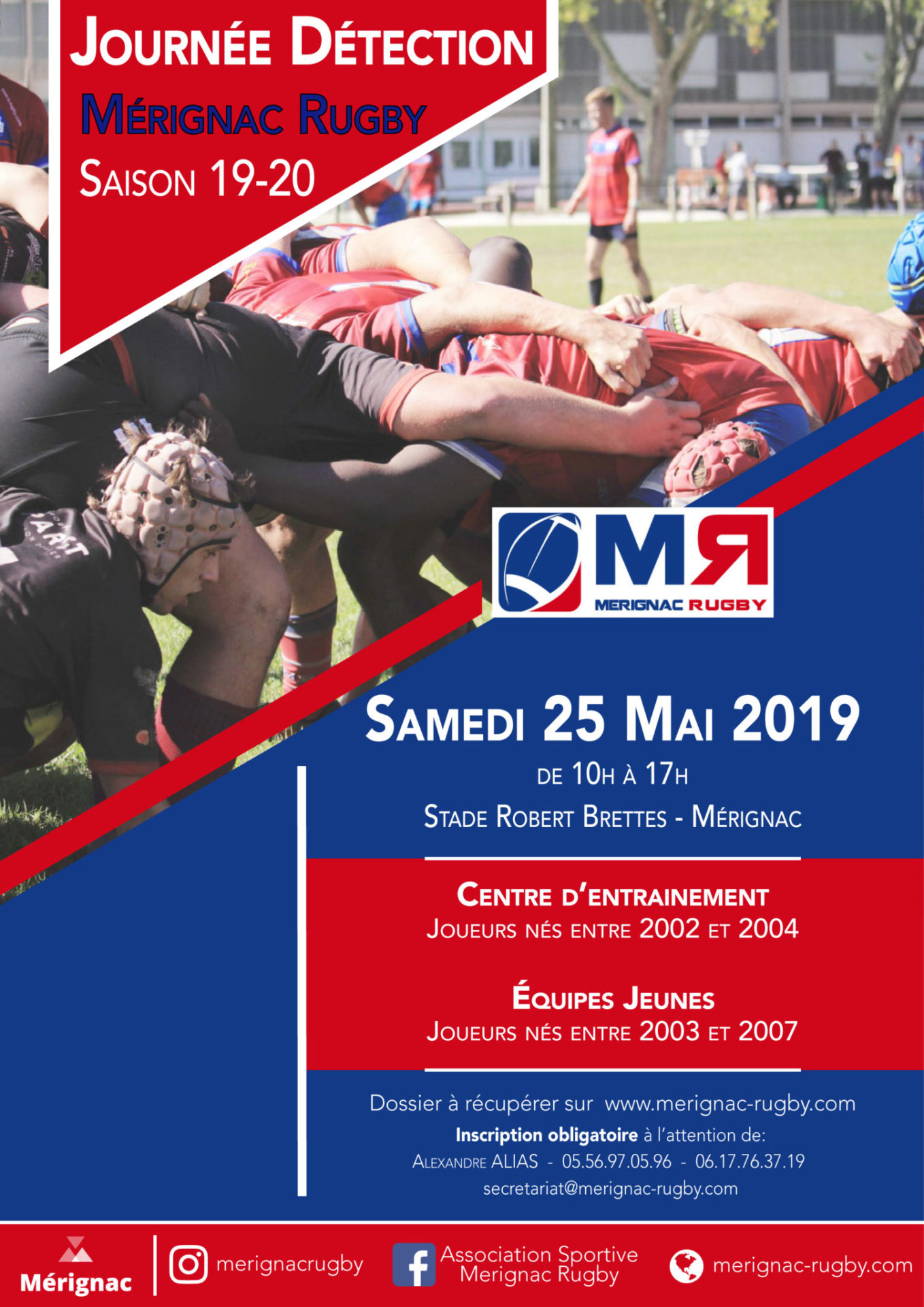 Lire la suiteDans le cadre de son Centre d’Entrainement Labellisé FFR, le club de MÉRIGNAC RUGBY ouvre sa journée de détection annuelle. […]